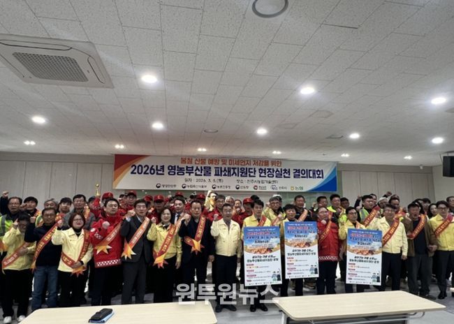 (원투원뉴스) 진주시는 5일 진주시농업기술센터에서 봄철 산불조심기간(3.1.~3.7.)을 맞아 행정안전부, 농촌진흥청, 산림청, 경상남도, 농협 등 기관 관계자와 진주시 파쇄지원단 등 120여 명이 참여한 가운데 ‘2026년 영농부산물 파쇄지원단 현장 실천 결의대회 및 안전 처리 캠페인’을 개최했다.