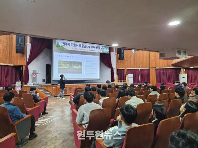 (원투원뉴스) 전주시는 5일 시청 강당에서 소속 부서 및 산하·출연기관 관계자 150여 명을 대상으로 ‘가로수 등 공공시설 수목 관리 교육’을 실시했다.