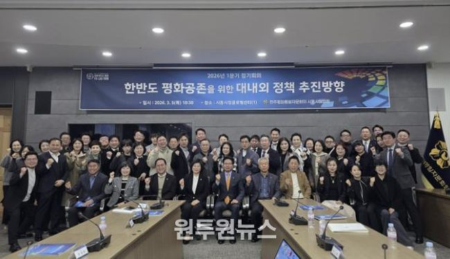 (원투원뉴스) 민주평화통일자문회의 시흥시협의회는 지난 3월 5일 시청 글로벌센터에서 ‘한반도 평화공존을 위한 대내외 정책 추진 방향’을 주제로 2026년 1분기 정기회의를 열었다.