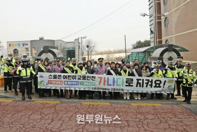 이날 캠페인에는 수원권선경찰서, 수원녹색어머니연합회, 금곡초등학교장과 학부모, 모범운전자 등 30여 명이 함께 참여했으며, 시민과 학부모, 운전자에게 ▲불법주정차 금지 ▲어린이보호구역 교통안전 수칙 준수 등을 적극 홍보했다.