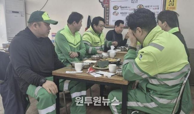 (원투원뉴스) 수원시 영통구 매탄4동은 지난 5일 쾌적한 거리환경 조성을 위해 힘쓰고 있는 환경관리원을 격려하기 위해 주민자치회와 함께 환경관리원 오찬 간담회를 개최했다.