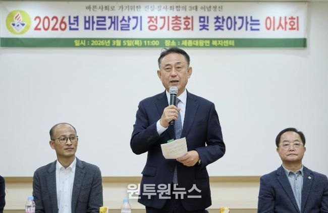 (원투원뉴스) 지난 3월 5일 세종대왕면 복지회관에서 세종대왕면 바르게살기운동 위원회 정기총회가 개최됐다. 이날 총회에는 이충우 여주시장을 비롯해 박시선 여주시의회 의원, 김희수 세종대왕면장, 심덕보 위원장을 비롯한 바르게살기 운동 회원 등 30여 명이 참석해 단체 운영과 지역사회 발전 방안을 논의했다.