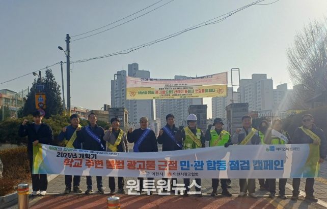 (원투원뉴스) 이천시는 2026년 개학기를 맞아 3월 5일 부발읍 신하초등학교 일원에서 시 관계 공무원 및 불법광고물 정비반, 이천시광고협회 회원들이 참여한 가운데 학교 주변 불법광고물 근절을 위한 민관 합동점검 캠페인을 진행했다.
