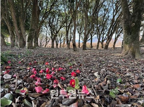 (원투원뉴스) 장흥군 묵촌마을에 조성된 동백림에 동백꽃이 만개했다.