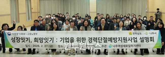 나주여성새로일하기센터는 최근 관내 45개 기업과 6개 유관기관이 참석한 가운데 ‘2026년 경력 단절 예방 지원 사업 홍보 및 조직문화 개선 설명회’를 개최했다고 6일 밝혔다.