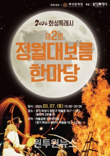(원투원뉴스) ‘2026년 화성특례시 제2회 정월대보름 한마당’이 오는 3월 7일 오후 3시부터 8시까지 동탄역 3번 출구 앞 광장에서 열린다.