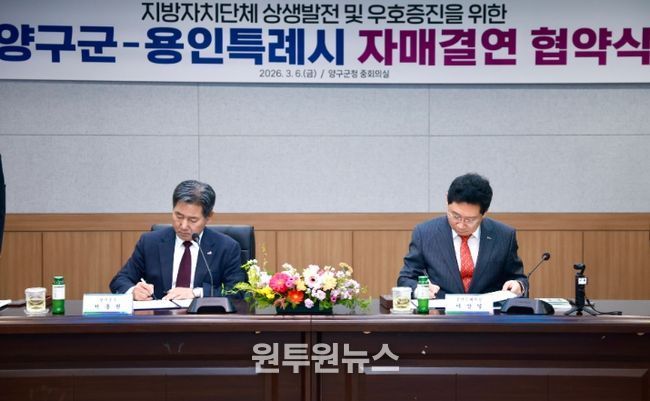(원투원뉴스) 용인특례시는 6일 강원특별자치도 양구군과 자매결연을 하고, 두 도시의 교류와 발전을 위해 적극 협력하기로 했다.