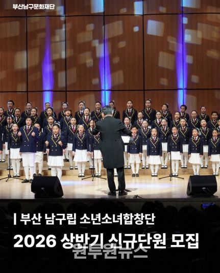 (원투원뉴스) (재)부산남구문화재단은 남구립 소년소녀합창단의 신규 합창단원을 2026년 3월 3일부터 3월 17일까지 모집한다고 밝혔다.