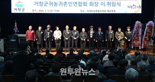 (원투원뉴스) 거창군귀농귀촌인연합회는 지난 6일, 거창군농업기술센터 미래농업복합교육관에서 내빈과 연합회 회원 등 150여 명이 참석한 가운데 제7대·8대 회장 이·취임식을 개최했다.