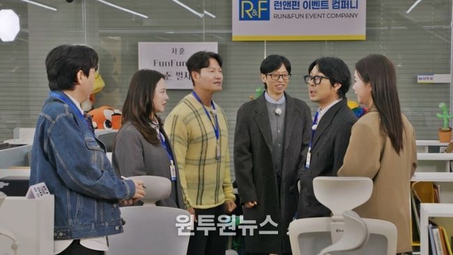 최근 진행된 녹화에서 멤버들은 이벤트 업계의 신흥 강자인 ‘런앤펀 이벤트 컴퍼니’의 직원이 되어 등장했다. 오랜만에 ‘유 부장’으로 돌아온 유재석을 비롯해 ‘지 상무’ 지석진, ‘꼰대 차장’ 김종국, ‘영포티 과장’ 하하와 ‘술상무 과장’ 송지효, ‘MZ 사원’ 양세찬과 지예은까지 범상치 않은 캐릭터로 사내 분위기를 뒤흔들 예정이다.