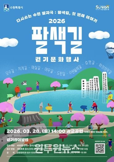 (원투원뉴스) 수원특례시가 ‘2026 팔색길 걷기 문화행사’에 참여할 시민 400명을 3월 20일까지 선착순으로 모집한다.