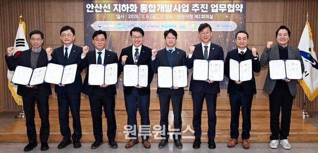 (원투원뉴스) 안산시는 지난 6일 오전 안산시청 제1회의실에서 ‘안산선 지하화 통합개발사업’ 진행을 위한 업무협약을 체결하고, 같은 날 오후 기본계획 수립 용역 착수보고회를 개최했다고 7일 밝혔다.