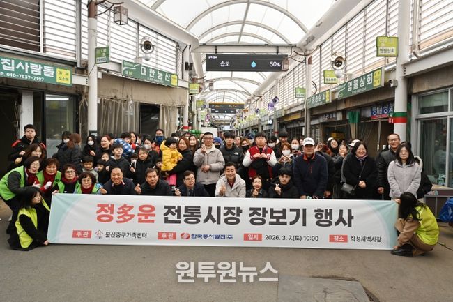 (원투원뉴스) 울산중구가족센터가 한국동서발전㈜의 후원을 바탕으로 3월 7일 오전 10시 학성새벽시장에서 저소득 가정과 함께하는 ‘정多운 전통시장 장보기 행사’를 진행했다.