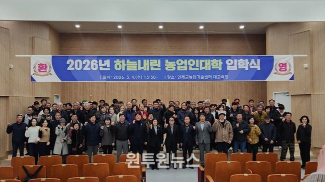 인제군은 지난 3월 4일 인제군농업기술센터 대교육장에서 ‘2026 하늘내린농업인대학’ 입학식을 열고 올해 교육과정 운영에 들어갔다고 밝혔다.