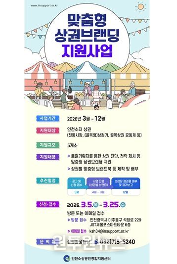 (원투원뉴스) 인천광역시는 지역 상권의 고유한 특성과 경쟁력을 체계적으로 진단하고, 상권별 맞춤형 전략을 수립하기 위한'맞춤형 상권브랜딩 지원사업'을 올해 처음으로 추진한다고 밝혔다.