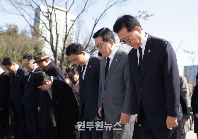 (원투원뉴스) 대전시의회 조원휘 의장은 8일 3·8민주의거 기념탑을 참배하고, 시청 대강당에서 열린 제66주년 3·8민주의거 기념식에 참석해 민주 정신의 세대 계승을 촉구했다.