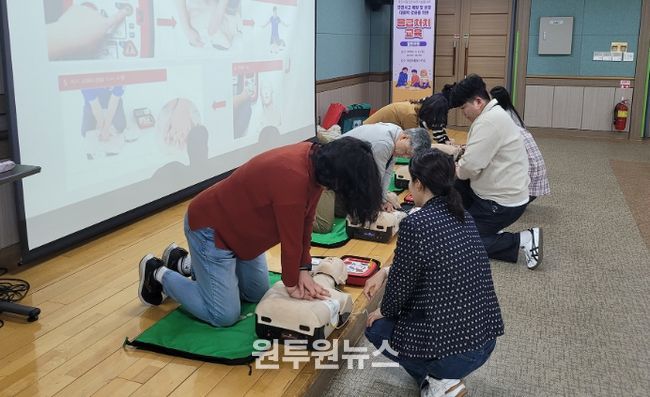 교육 내용은 ▲심폐소생술(CPR) 이론 및 실습 ▲자동심장충격기(AED) 사용법 ▲기도폐쇄 처치법 ▲상황별 응급처치 요령 등 실제 현장에서 즉각 적용할 수 있는 이론과 실습 중심으로 구성됐다.