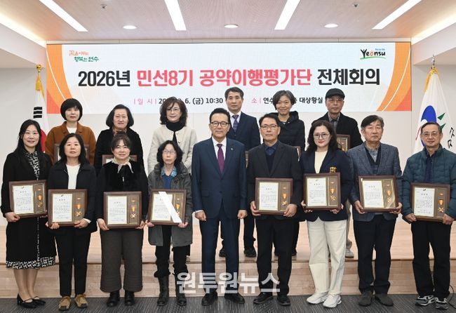 연수구는 지난 6일 대상황실에서 공약이행평가단 위원들이 참석한 가운데 ‘2026년 민선 8기 공약이행평가단 전체 회의’를 개최했다.