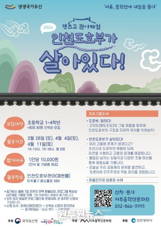 한편, 이번 행사는 국가유산청과 미추홀구가 주최하고 미추홀학산문화원이 주관하며, 인천광역시가 후원하는 2026 생생 국가유산 사업 ‘비류, 문학산에 내일을 품다’의 일환으로 운영된다.