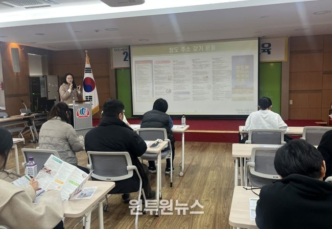 교육은 주민복지과 복지기획팀에서 직접 진행했으며 일반현황, 장애인대상 주요서비스, 청도 주소갖기 운동, 예산편성 및 교부, 보조금사용 및 사업수행, 정산 및 검사, 사후관리 등을 중심으로 실시간 질의응답 방식의 현장 교육을 진행했다.