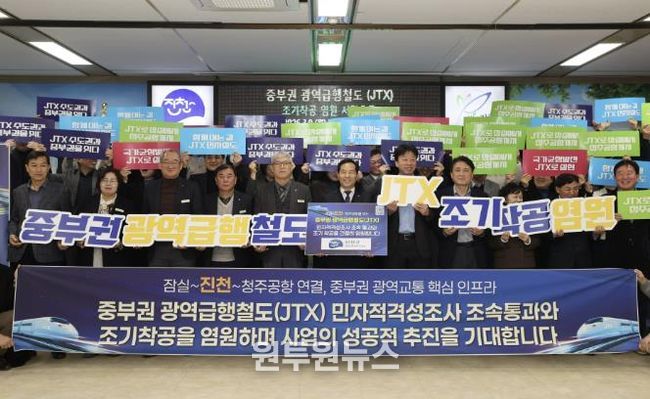 (원투원뉴스) 충북 진천군이 중부권 광역급행철도(JTX) 조기 착공을 촉구하기 위한 범군민 서명운동에 돌입한다.