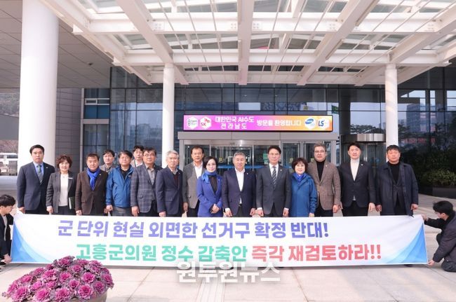 (원투원뉴스) 고흥군의회는 전라남도 시군의원 선거구획정위원회 제3차 회의에서 의결된 의견수렴 초안 가운데 고흥군 군의원 정수를 1명 감축하는 방안에 대해 강력히 반발하며 건의문을 발표하고, 지난 9일 전남도청을 방문해 관계 부서와 면담을 갖는 등 적극적인 대응에 나섰다.
