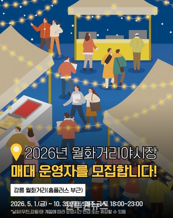 (원투원뉴스) 강릉시는 2026년 운영 4년 차를 맞는 ‘월화거리야시장’의 매대운영자를 추가 모집한다고 밝혔다.