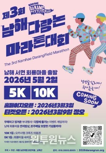 이정만 회룡농촌체험휴양마을 위원장은 “이번 다랑논 마라톤은 지역 주민들이 함께 준비한 마을 축제로, 스포츠 대회 이상으로 남해의 낭만과 감성을 경험할 수 있는 소중한 시간이 되길 바란다”고 밝혔다.