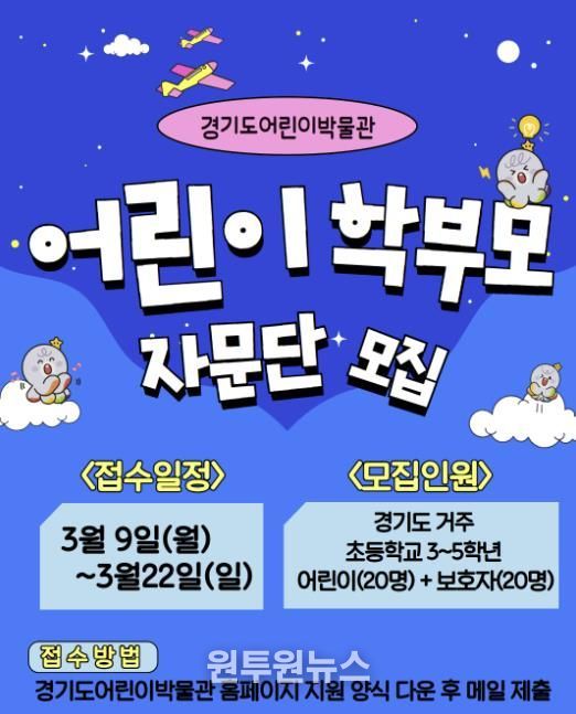 (원투원뉴스) 경기문화재단 경기도어린이박물관이 2026년 개관 15주년을 맞아 ‘제17기 어린이자문단’을 전면 확대 운영하고, 신규 ‘학부모자문단’을 창설한다고 밝혔다. 이번 자문단 운영을 통해 어린이와 보호자를 박물관 운영의 핵심 파트너로 모시고, 이용자 의견이 실제 정책과 운영에 반영되는 ‘함께 성장하는 포용적 박물관’의 가치를 강화 할 예정이다.