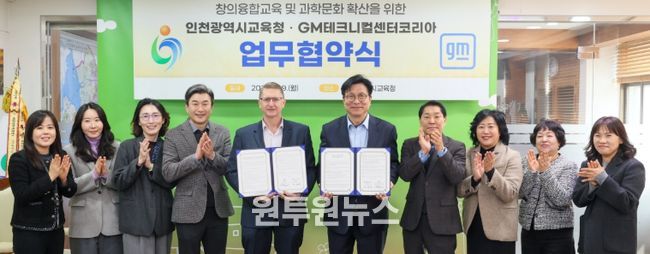 (원투원뉴스) 인천광역시교육청은 지난 9일 GM테크니컬센터코리아(사장 브라이언 맥머레이)와 ‘창의융합교육 및 과학문화 확산을 위한 업무협약’을 체결했다.
