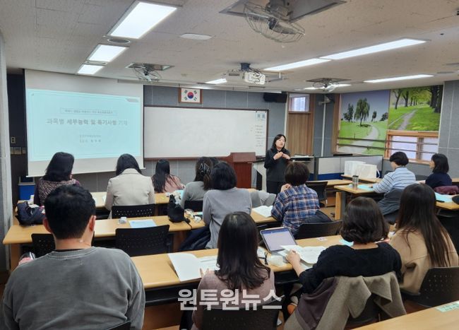 이번 연수는 순회교사들이 변화하는 대입 제도에 발맞춰 학교생활기록부 기재 전문성을 갖추고, 고교학점제 기반의 수업 역량을 높일 수 있도록 이론 강의와 분임 토의 형식으로 진행했다.