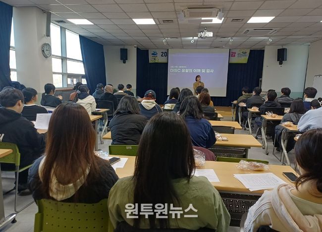 이번 특강에서는 성공적인 취업을 위한 자기 분석을 비롯해 공공기관, 공기업, 사기업의 직무 특성, DISC 행동유형 검사를 통해 자신에게 맞는 역할과 필요 역량, 인성 등을 탐색하는 시간을 가졌다.