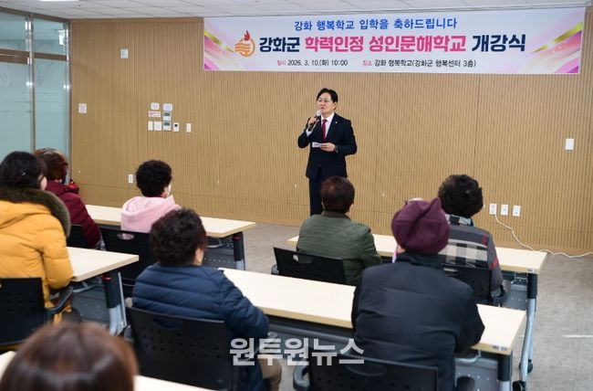 (원투원뉴스) 강화군은 10일 강화군행복센터에서 배움의 기회를 놓친 어르신들을 위한 성인문해학교 ‘강화 행복학교’ 개강식을 개최했다. 이날 행사는 늦깎이 배움에 도전하는 어르신들을 응원하는 따뜻한 분위기 속에서 진행되며 감동을 더했다.