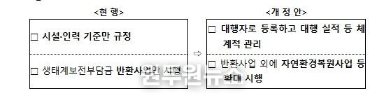 셋째, 기존 자격 요건만으로 운영되던 자연환경보전사업 대행자 제도를 등록제로 전환하여 전문성을 강화한다.