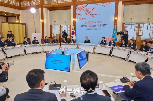 이 대통령은 이날 청와대에서 '상생협력의 씨앗, 모두의 성장으로 꽃 피우다'라는 주제로 열린 '상생을 실천하는 기업인과의 대화' 모두발언에서 "우리가 지속적 성장을 계속하기 위해 가장 중요한 것이 상생의 생태계 조성이라 생각한다"며 이 같이 말했다.