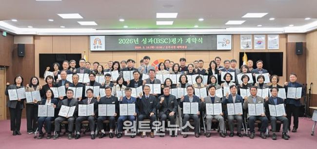 (원투원뉴스) 공주시는 지난 10일 시청 대백제실에서 국·소장 등 5급 이상 간부 공무원 61명을 대상으로 성과과제 계약을 체결했다고 밝혔다.