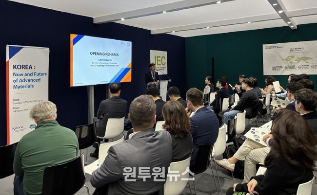 (원투원뉴스) 경기경제자유구역청은 현지시각 10일 프랑스 파리에서 열린 세계 최대 복합소재 전시회 ‘JEC WORLD 2026’와 연계해 유럽 첨단소재 분야 투자 설명회(IR)를 진행하는 등 글로벌 복합소재 선도기업을 대상으로 투자유치 활동을 전개했다.
