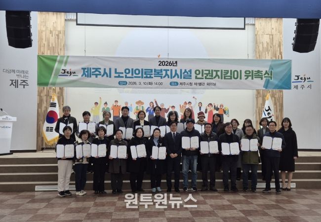 (원투원뉴스) 제주시는 10일 시청 1별관 회의실에서 ‘2026년 노인의료복지시설 인권지킴이 위촉식’을 개최하고, 인권지킴이 20명을 위촉했다.