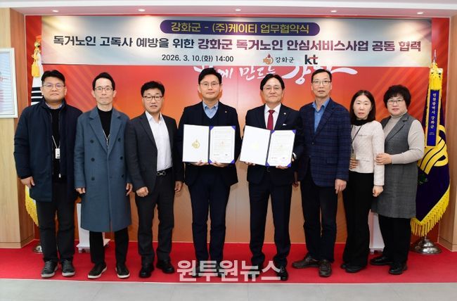 (원투원뉴스) 강화군은 지난 10일 KT와 독거노인 안심서비스 사업 추진을 위한 업무협약을 체결했다.