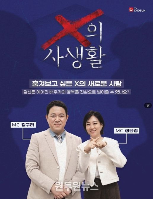오는 3월 17일(화) 밤 10시 첫 방송되는 TV CHOSUN ‘X의 사생활’은 이혼한 전 배우자의 일상을 지켜보는 리얼 관찰 프로그램이다. 한때는 누구보다 가까웠지만 이제는 ‘남보다 못한 사이’가 된 두 사람이 각자의 삶을 살아가는 모습을 통해 관계가 끝난 뒤에도 남아 있는 감정과 변화의 과정을 담는다. 일명 ‘이혼 부부들의 입장 정리 리얼리티’로, MC 김구라와 장윤정을 중심으로 패널 천록담, 정경미가 합류해 환상의 라인업을 완성했다.