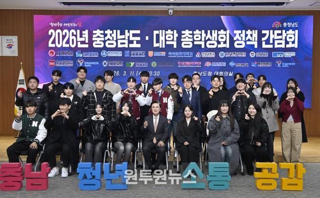 (원투원뉴스) 충남도는 11일 도청 대회의실에서 도내 20개 대학* 총학생회장단과 청년정책의 실효성을 높이고 지역 활력을 제고하기 위한 ‘2026년 도-대학 총학생회 정책 간담회’를 개최했다.