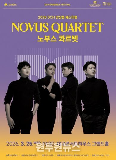 (원투원뉴스) 대구콘서트하우스(관장 박창근)가 선보이는 ‘2026 DCH 앙상블 페스티벌’의 대미를 장식할 하이라이트 무대가 찾아온다. 세계적인 현악사중주단 ‘노부스 콰르텟(Novus Quartet)’의 공연이 오는 3월 25일 오후 7시 30분 대구콘서트하우스 그랜드홀에서 열린다.