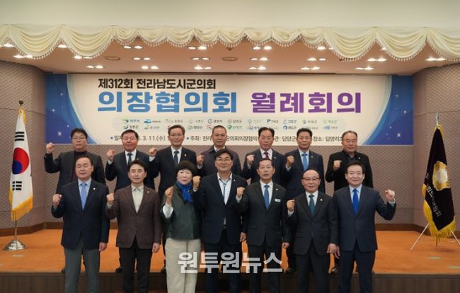 (원투원뉴스) 전남 지역 시·군의회 간의 화합과 공동 발전을 모색하는 ‘제312회 전라남도 시·군의회의장협의회 월례회’가 11일 담양군에서 성황리에 개최됐다.
