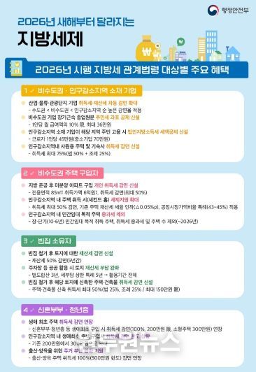 (원투원뉴스) 경남 밀양시는 2026년 인구감소 대응과 지역경제 활성화를 위해 달라진 지방세 관계법령 중, 밀양시 여건과 관련성이 높은 주요 제도를 중심으로 시민과 기업이 체감할 수 있는 핵심 내용을 안내하고 나섰다.