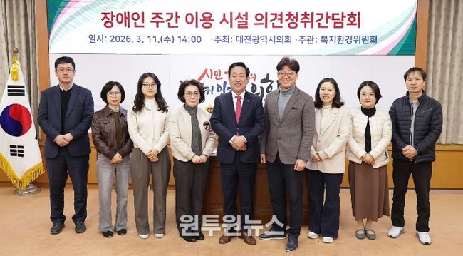 (원투원뉴스) 대전광역시의회 복지환경위원회는 11일 시의회 3층 소통실에서 이효성 의원(국민의힘, 대덕구1) 주재로 '장애인 주간 이용시설 의견청취 간담회'를 개최했다.