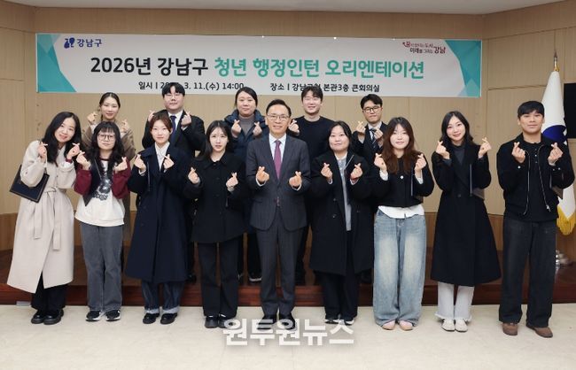 (원투원뉴스) 꿈이 모이는 도시, 미래를 그리는 강남구가 청년 13명을 행정인턴으로 선발하고, 11일 구청에서 오리엔테이션을 열었다. 청년이 공공 현장에서 실질적인 직무 경험을 쌓고 취업 경쟁력을 높일 수 있도록 올해 처음 도입한 사업이다.