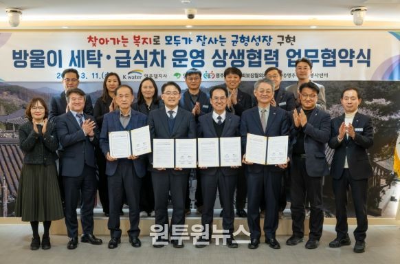 이번 협약은 영주댐 주변지역 주민지원사업의 일환으로, 정기적인 방문 이불 세탁과 식사 제공 서비스를 통해 고령·홀몸 거주민의 생활 위생환경을 개선하고 결식 및 영양결핍을 예방하는 등 생활밀착형 복지서비스를 확대하기 위해 마련됐다.