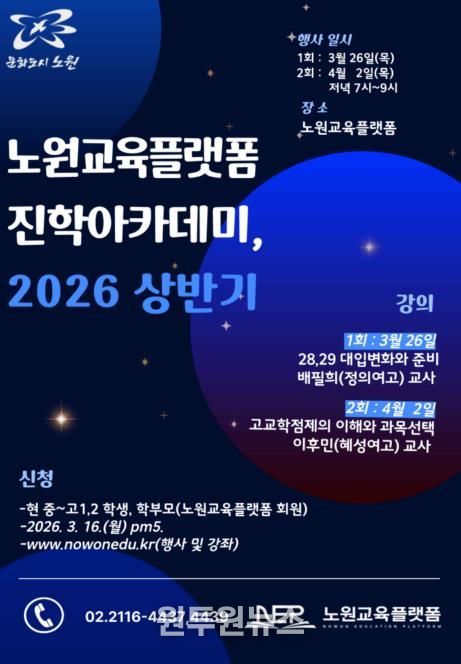 (원투원뉴스) 서울 노원구는 공신력 있는 교육 정보 제공을 위해 ‘2026년 상반기 노원교육플랫폼 진학아카데미’를 운영한다고 밝혔다.