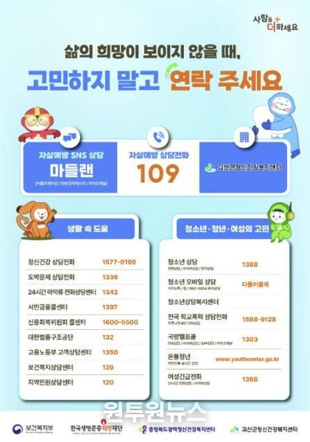 (원투원뉴스) 충북 괴산군은 봄철(3월~5월) 자살 고위험 시기를 맞아 예방 활동을 집중적으로 추진한다고 9일 밝혔다.