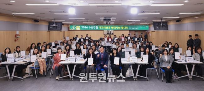 (원투원뉴스) 대구 수성구는 지난 11일 구청 대강당에서 어린이집 간 협력과 상생을 통한 보육환경 개선을 위해 ‘2026년 수성구형 다가치보육 협력사업 발대식’을 개최했다.